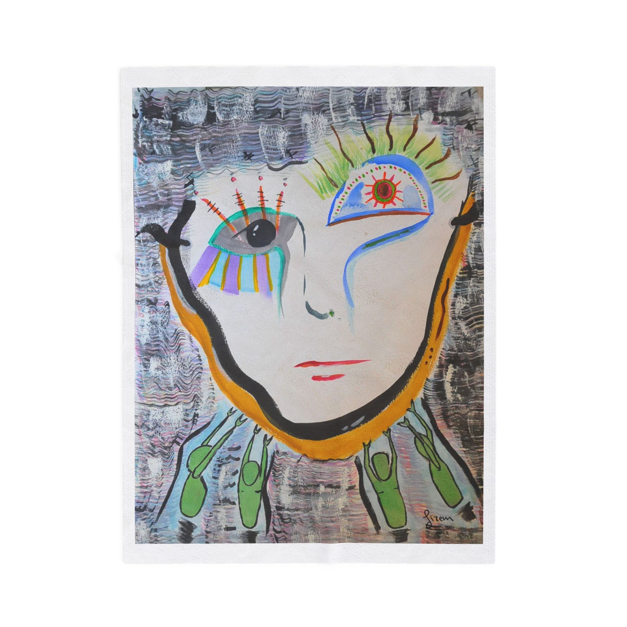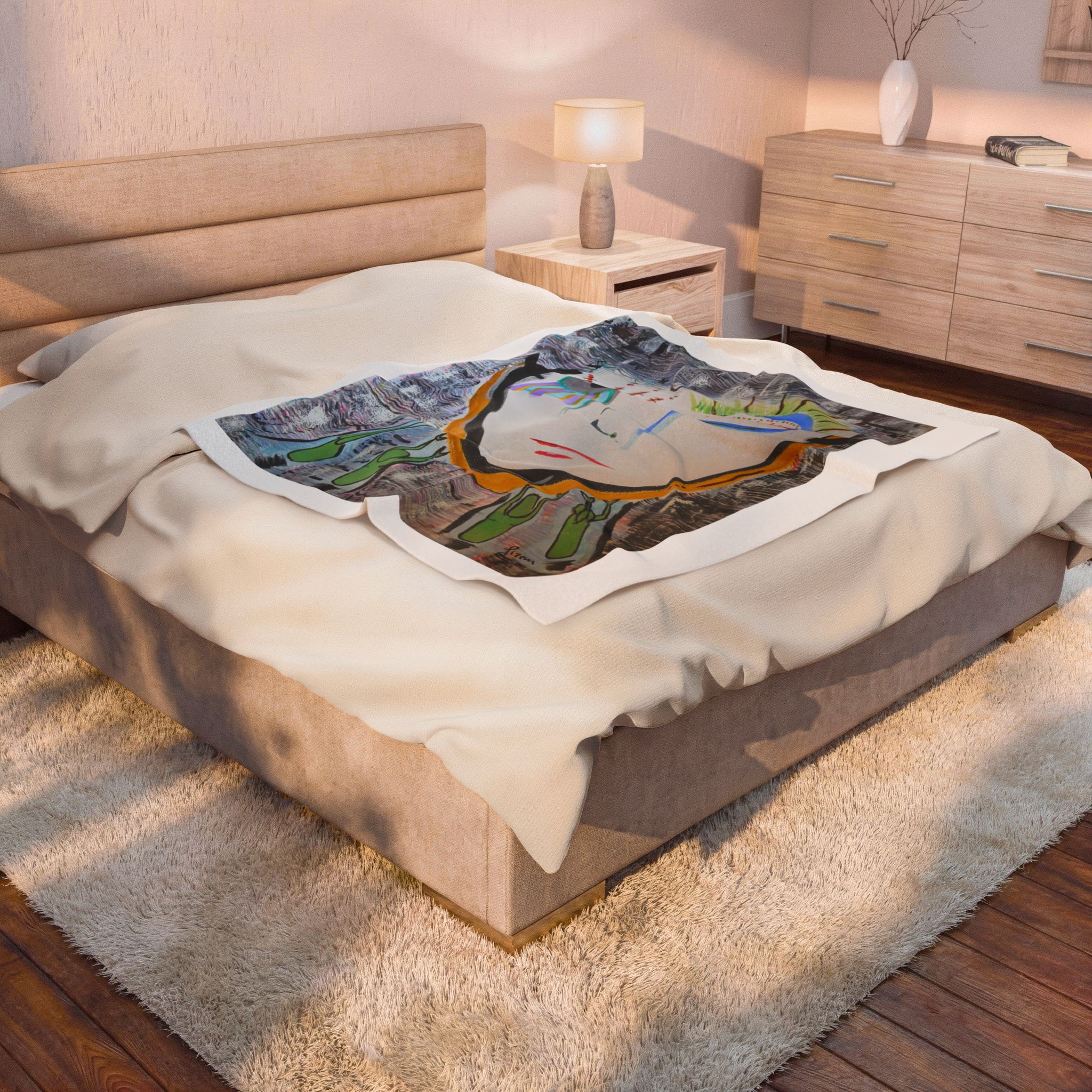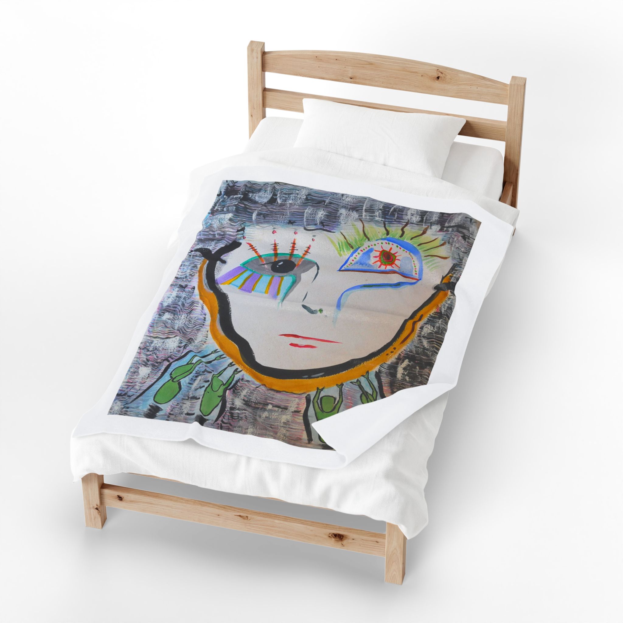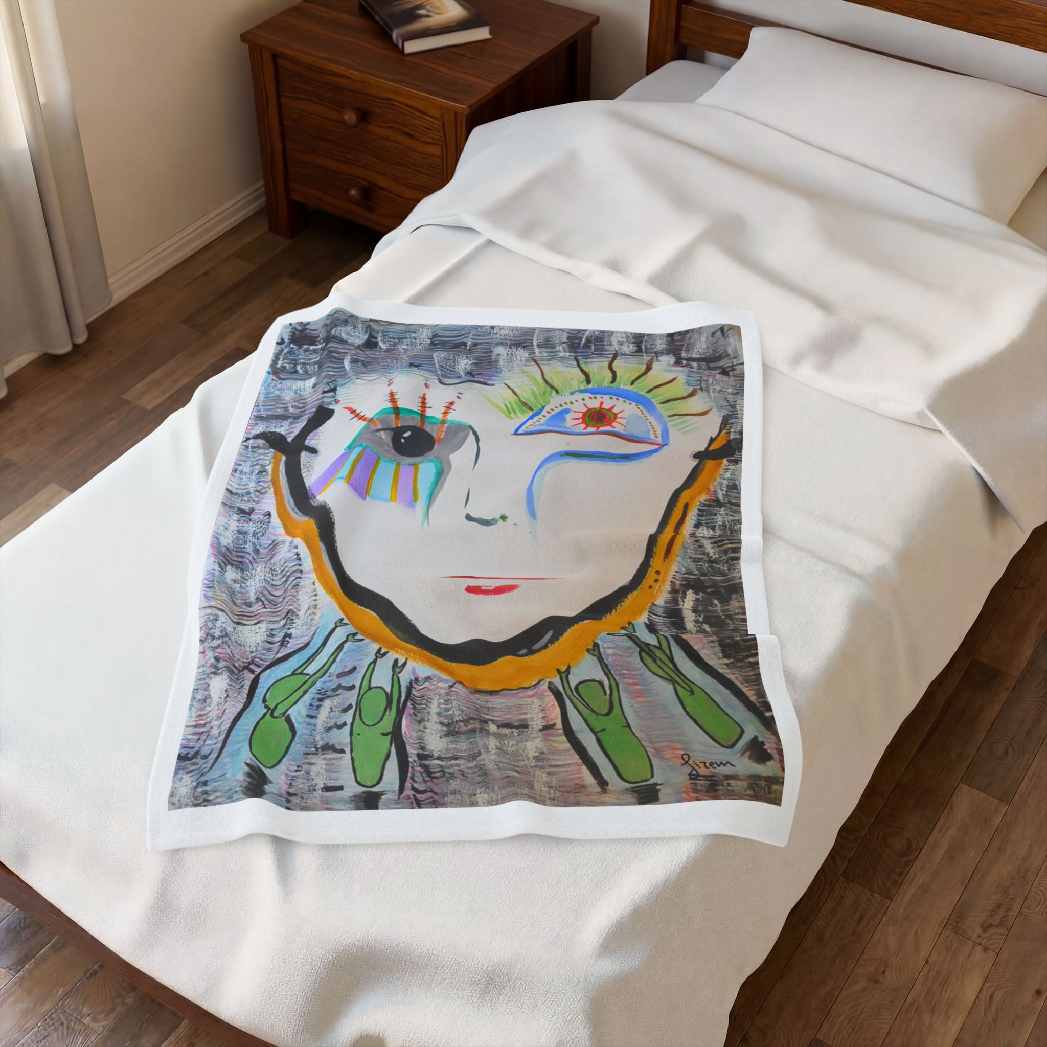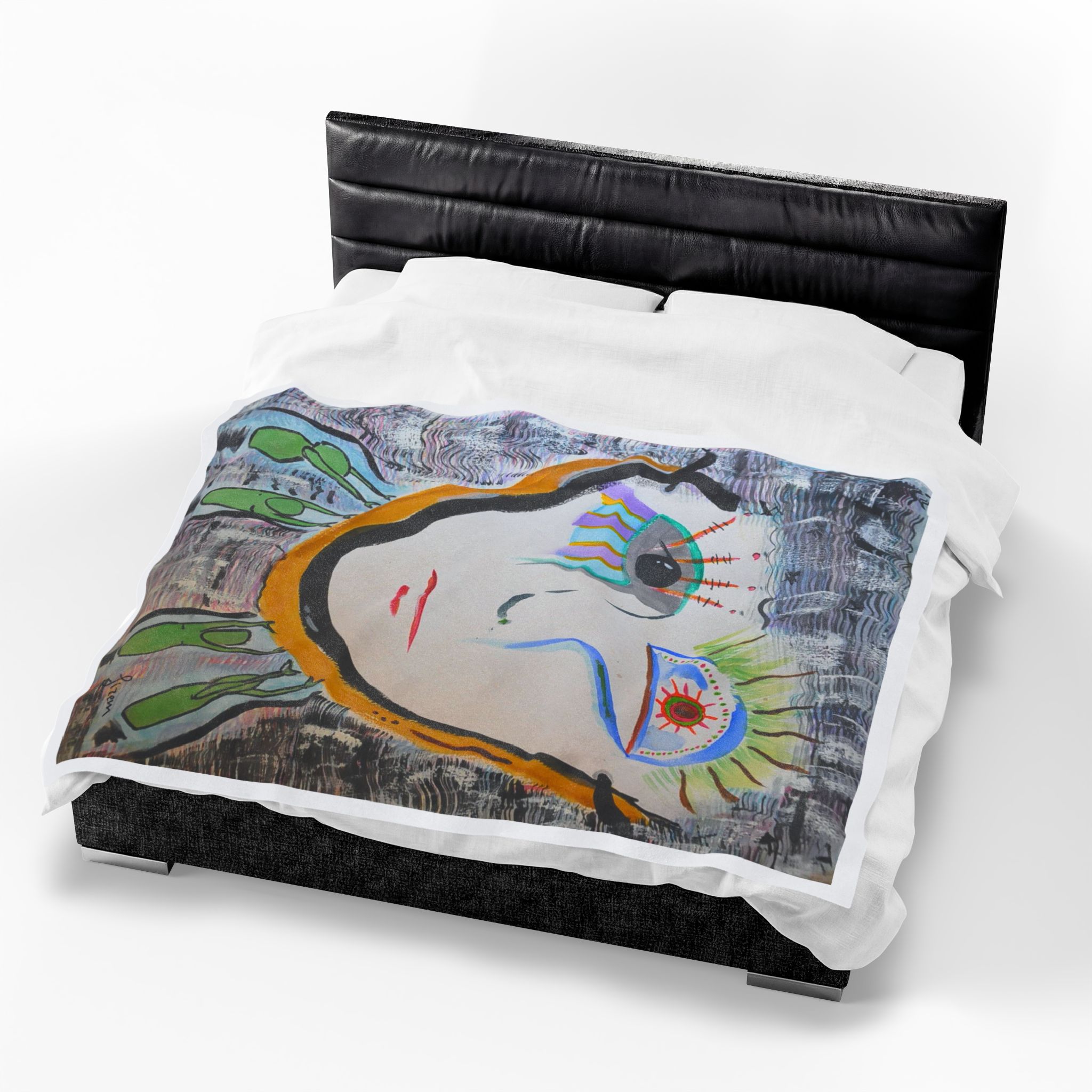 Wrap yourself in a wearable piece of art that feels like a quiet afternoon in a sunlit studio. This velveteen plush blanket pairs a painterly portrait and whimsical floral spirals with a buttery-soft, medium-weight fabric that holds colour beautifully. It settles in warm, plush comfort across your knees while the lively, hand-drawn design adds an artful note to a living room sofa, a reading nook, or a creative workspace. Thoughtful double-stitched edges keep the shape wash after wash, and the single-sided high-detail print keeps the artwork vivid without overwhelming the room. Reach for it when you want comfort with character — a small, tactile way to bring colour and calm into everyday moments and slower celebrations among friends and fellow art lovers.