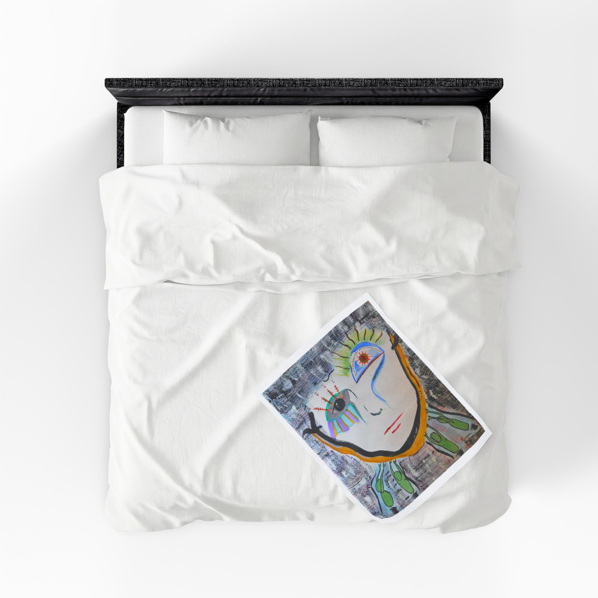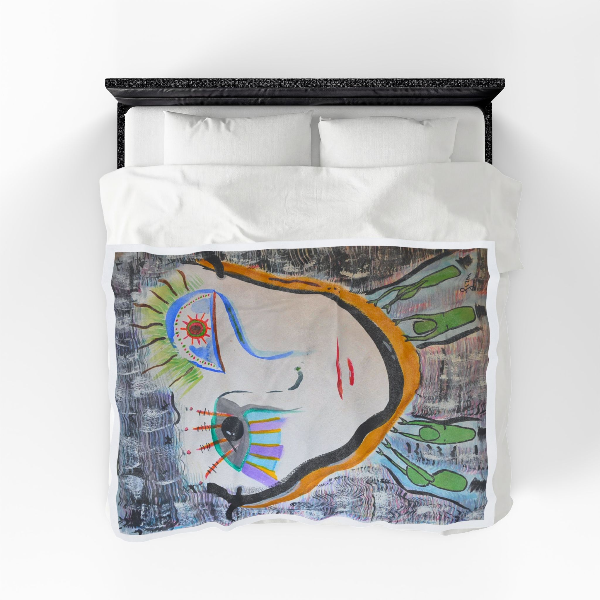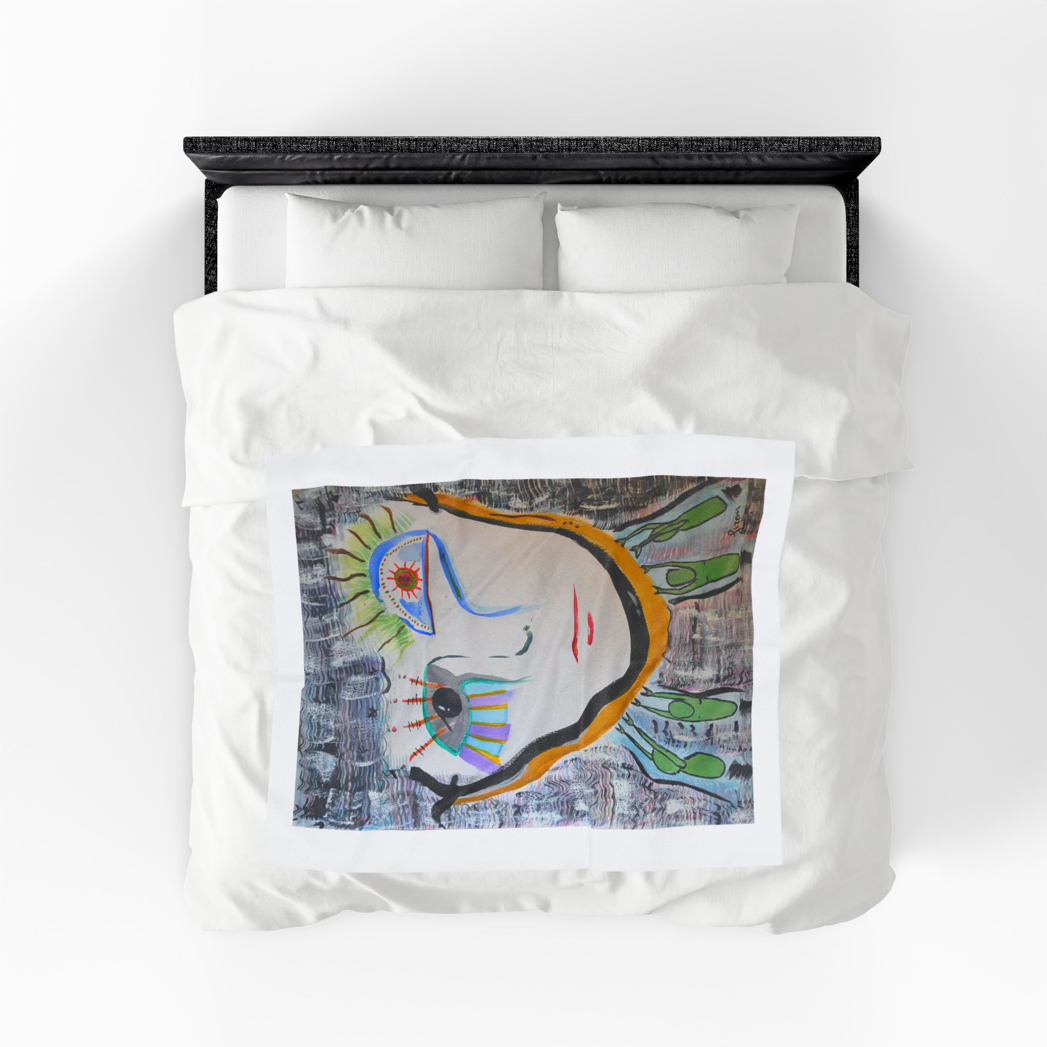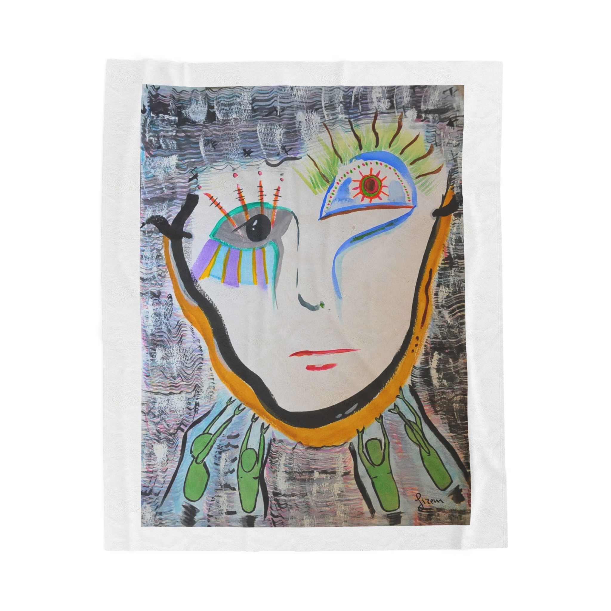 Wrap yourself in a wearable piece of art that feels like a quiet afternoon in a sunlit studio. This velveteen plush blanket pairs a painterly portrait and whimsical floral spirals with a buttery-soft, medium-weight fabric that holds colour beautifully. It settles in warm, plush comfort across your knees while the lively, hand-drawn design adds an artful note to a living room sofa, a reading nook, or a creative workspace. Thoughtful double-stitched edges keep the shape wash after wash, and the single-sided high-detail print keeps the artwork vivid without overwhelming the room. Reach for it when you want comfort with character — a small, tactile way to bring colour and calm into everyday moments and slower celebrations among friends and fellow art lovers.