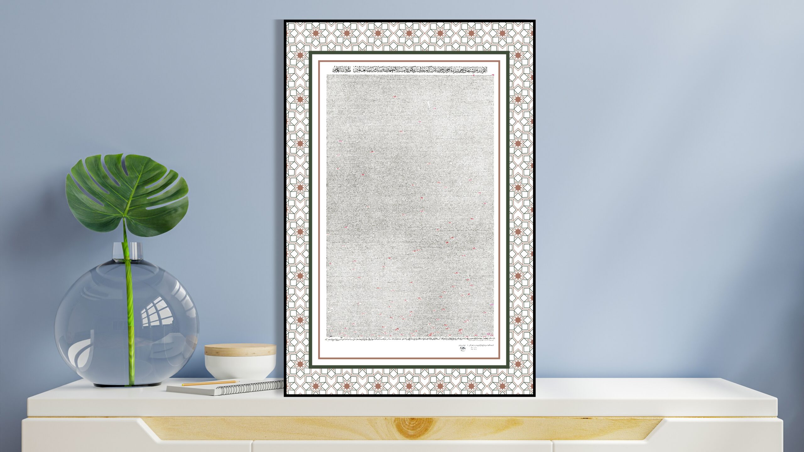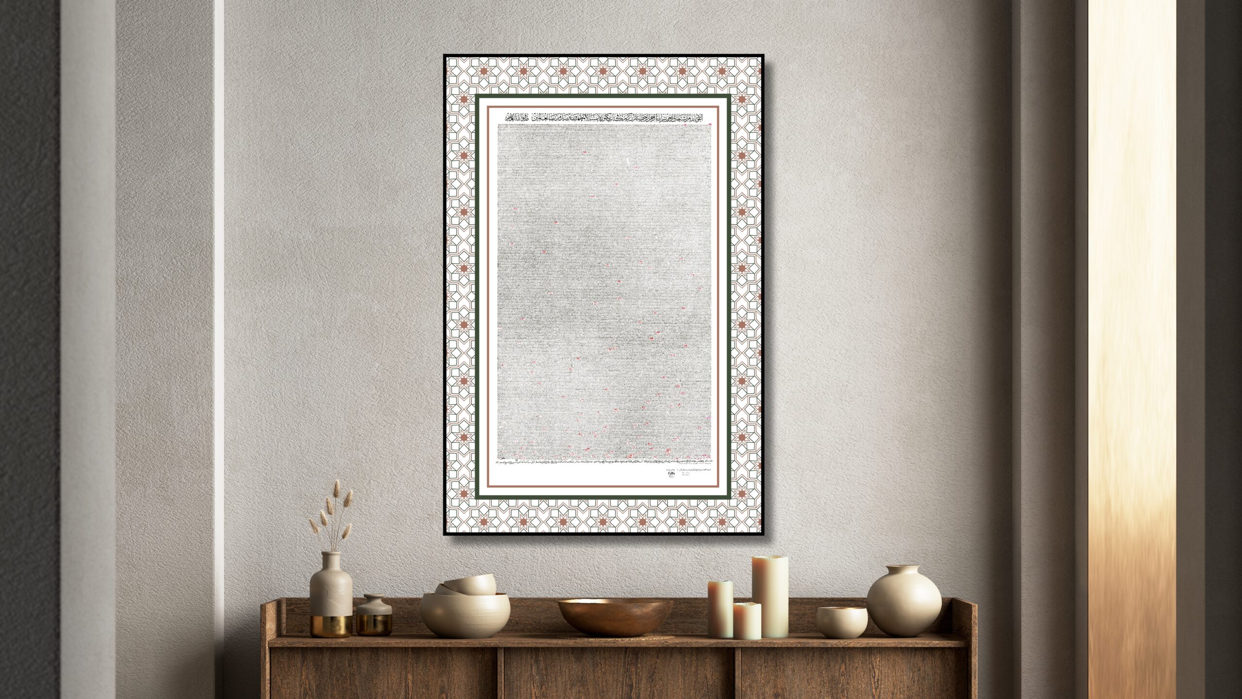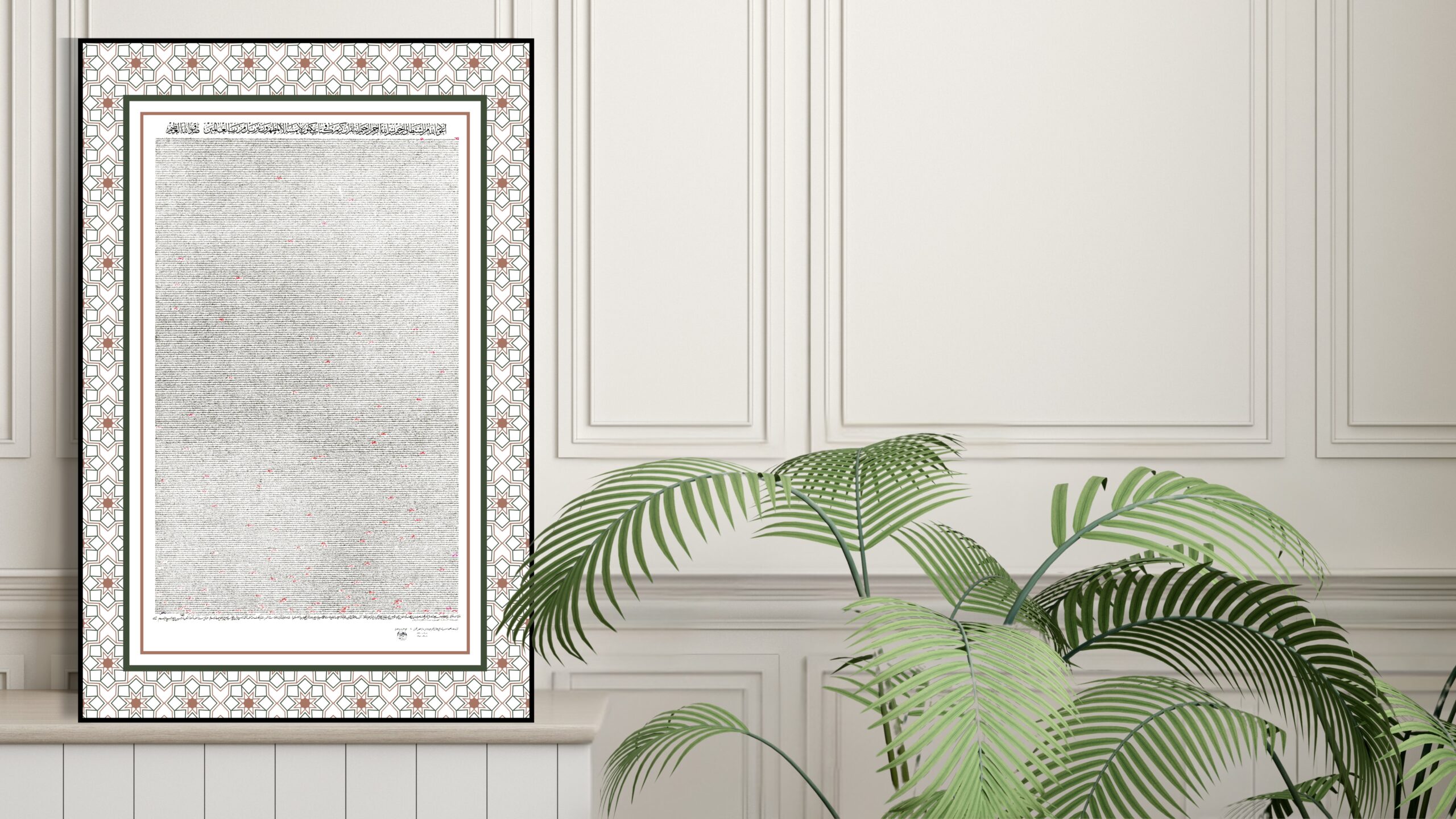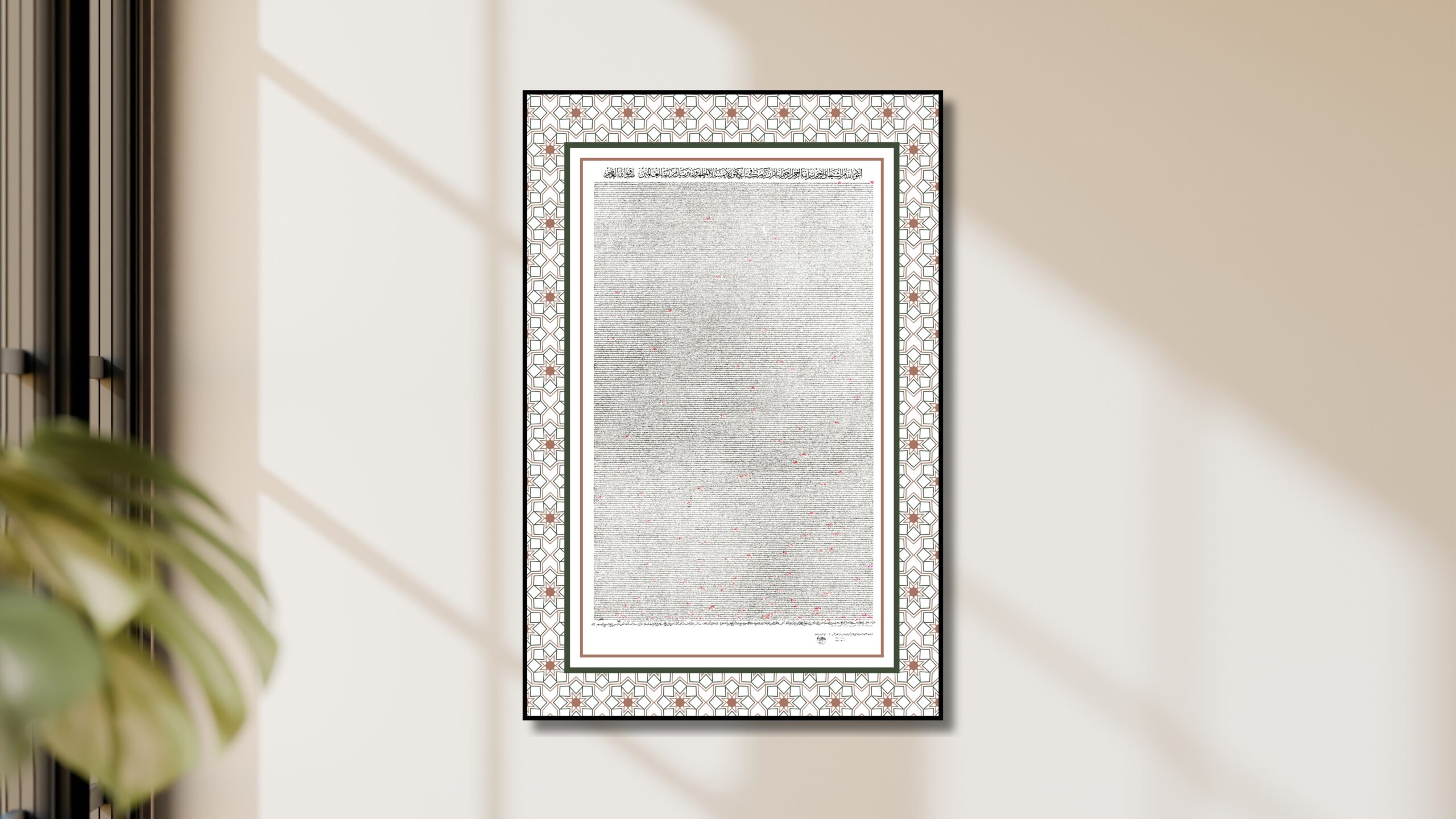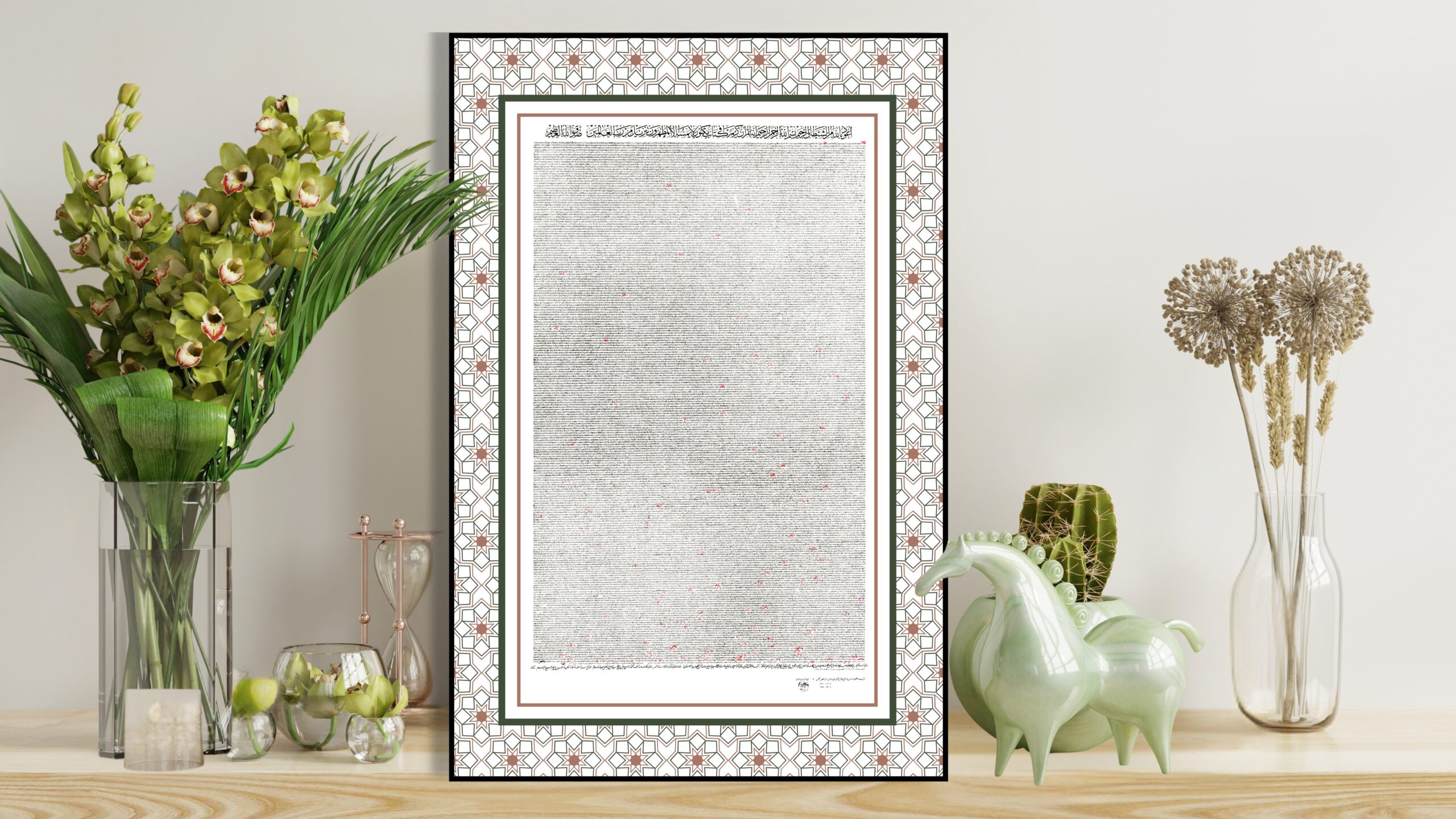 Script: Ta’liq — a fluid, slanted Persian-origin script in which all letters are rounded, written right to left. It shares stylistic kinship with Thuluth script. When executed with a pen of one centimeter or wider, the style is known as Celi Ta’liq, the monumental form of this tradition.