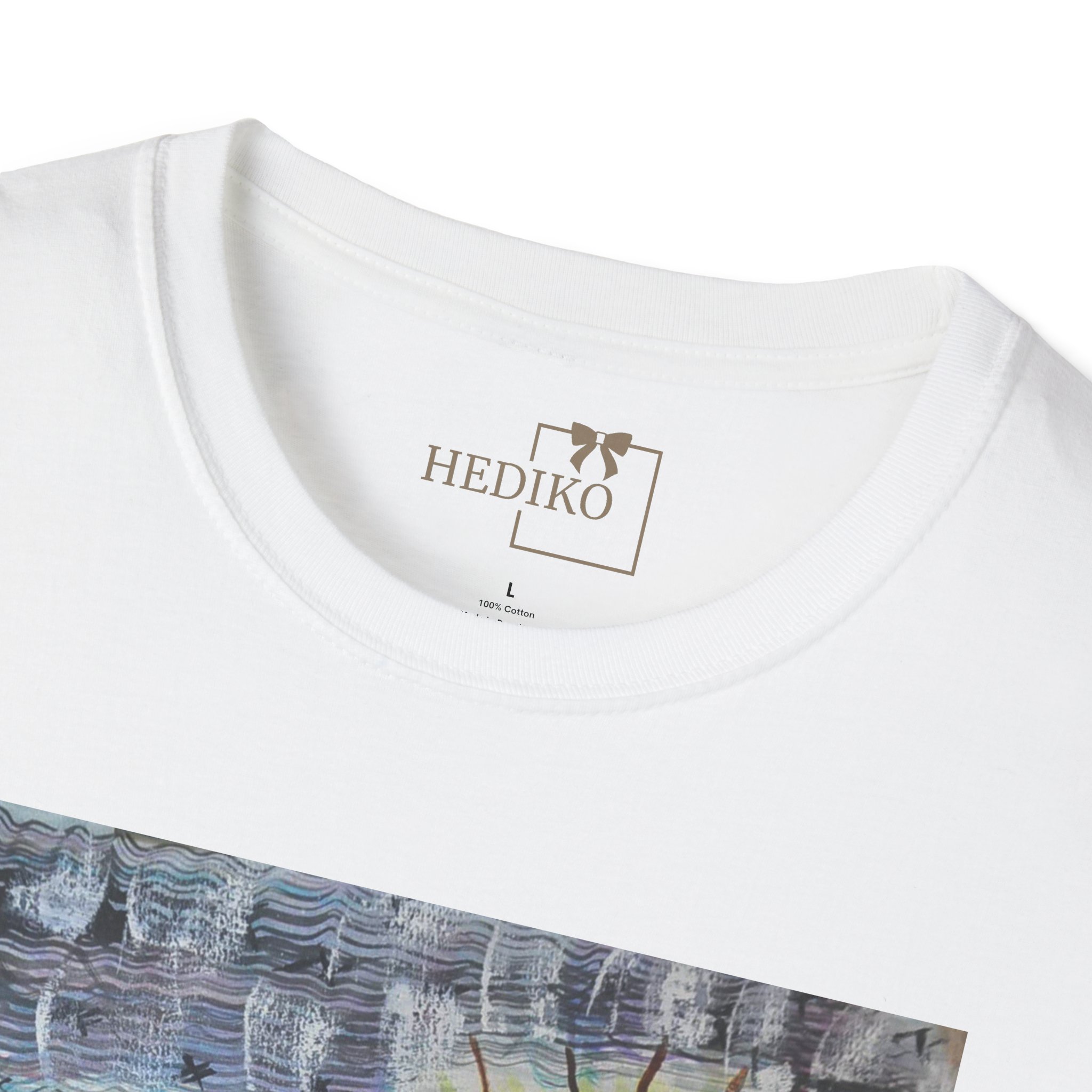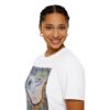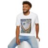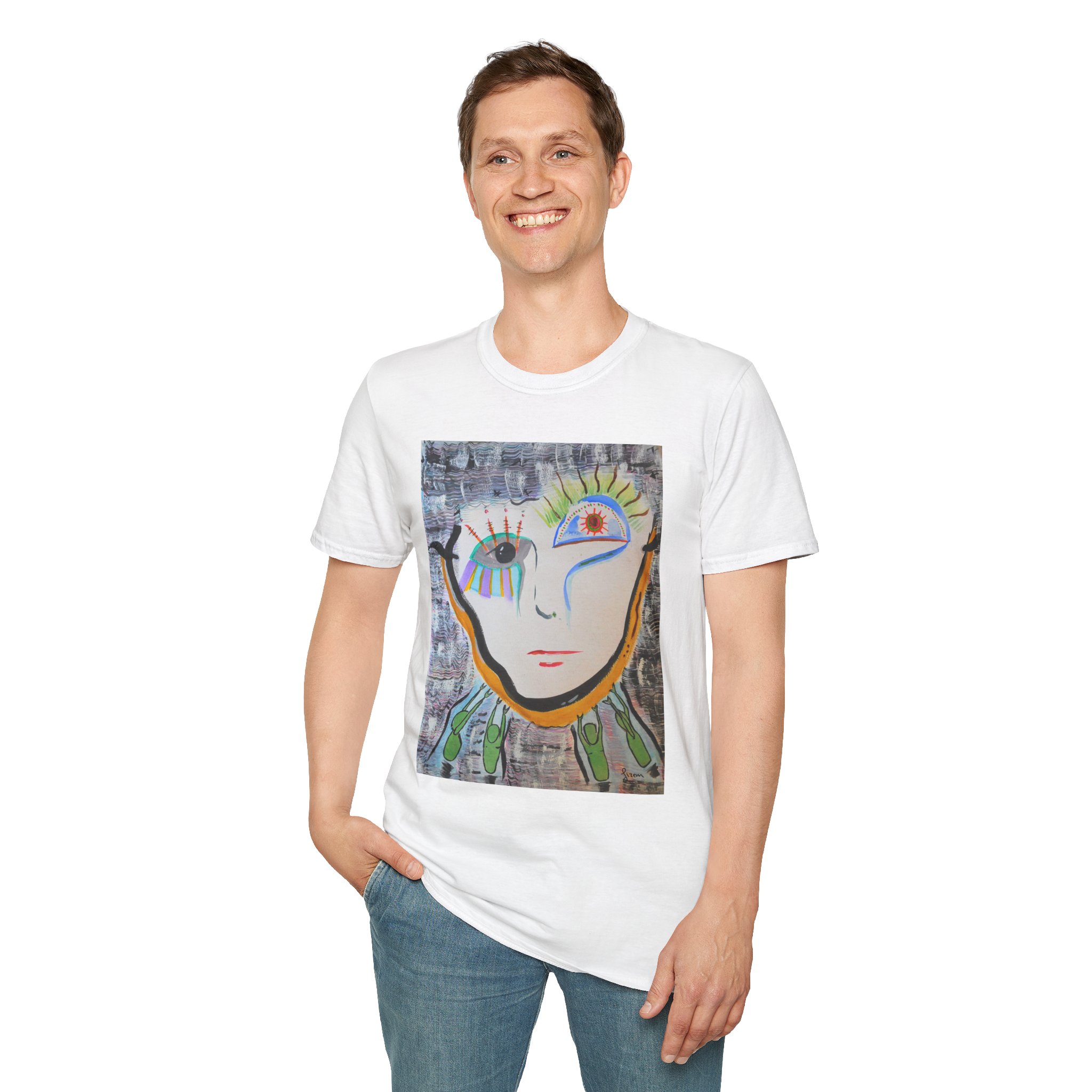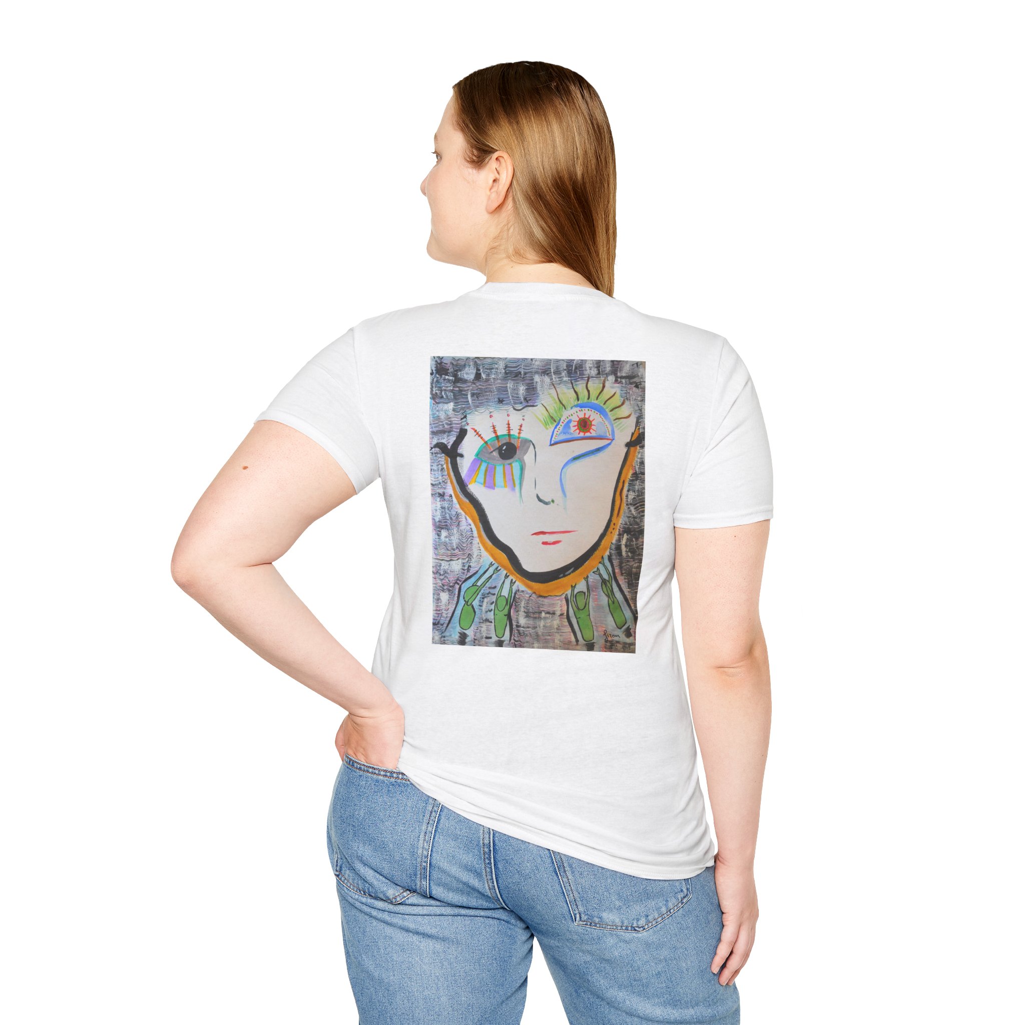 This lightweight crew-neck tee carries a hand-drawn, surreal portrait printed on a soft white canvas. The illustration feels like a private sketchbook page turned into wearable art. It settles comfortably over the shoulders, hangs with a clean classic fit, and reads like a quiet, thoughtful statement rather than loud branding. Wear it to studio visits, gallery nights, or slow coffee mornings when you want clothing that nods to creativity and curiosity. The breathable ring-spun cotton keeps the focus on the artwork while offering all-day ease and subtle texture from ethically grown fibres.
