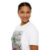 This lightweight crew-neck tee carries a hand-drawn, surreal portrait printed on a soft white canvas. The illustration feels like a private sketchbook page turned into wearable art. It settles comfortably over the shoulders, hangs with a clean classic fit, and reads like a quiet, thoughtful statement rather than loud branding. Wear it to studio visits, gallery nights, or slow coffee mornings when you want clothing that nods to creativity and curiosity. The breathable ring-spun cotton keeps the focus on the artwork while offering all-day ease and subtle texture from ethically grown fibres.